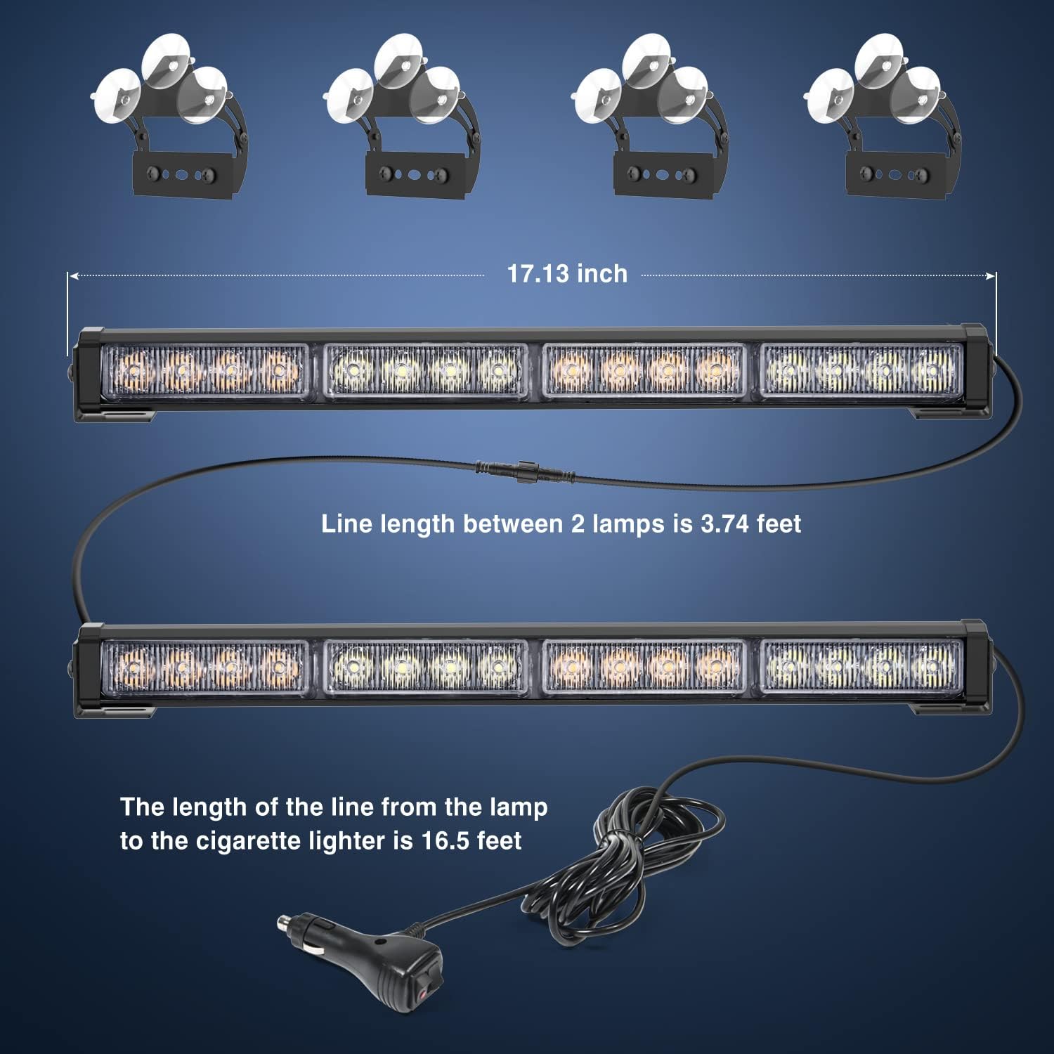 Goolight Traffic Advisor Emergency Strobe Light Bar 2 in 1 17Inch 32LED 23 Flash Patterns Directional Safety Warning Lights with Cigar Lighter on Trucks Police Construction Vehicles